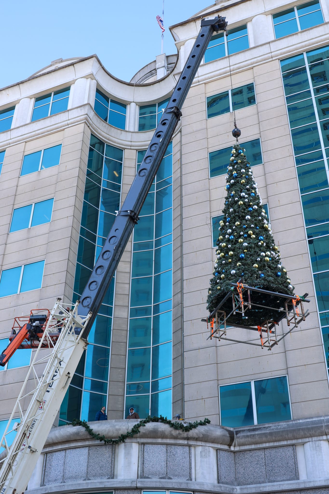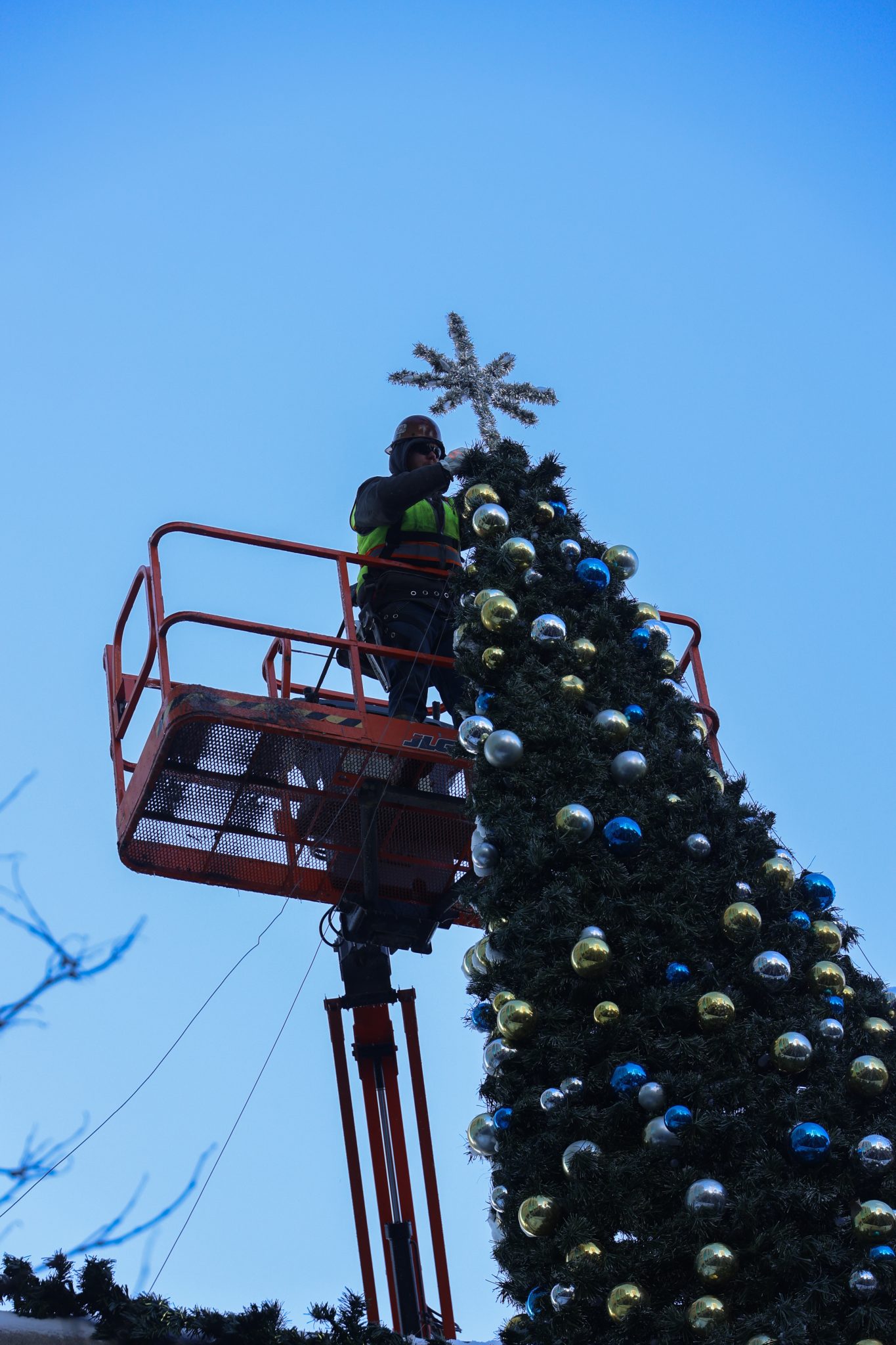 This year, Elevatus is honored to take the reins as sponsor of the iconic Christmas Tree Display for HolidayFest and Night of Lights. Two stunning 25-foot trees, complemented by garland and wreaths and adorned in shimmering cyan blue, gold, and silver ornaments, will light up the skyline and welcome thousands to the magic of downtown.