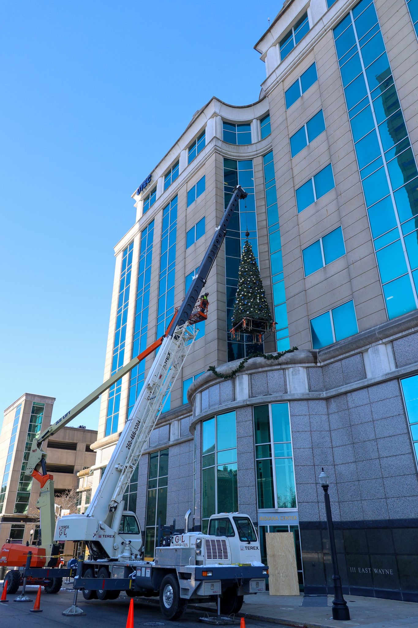 Elevatus Joins Downtown Fort Wayne’s Holiday Tradition with Two Brilliant Christmas Trees