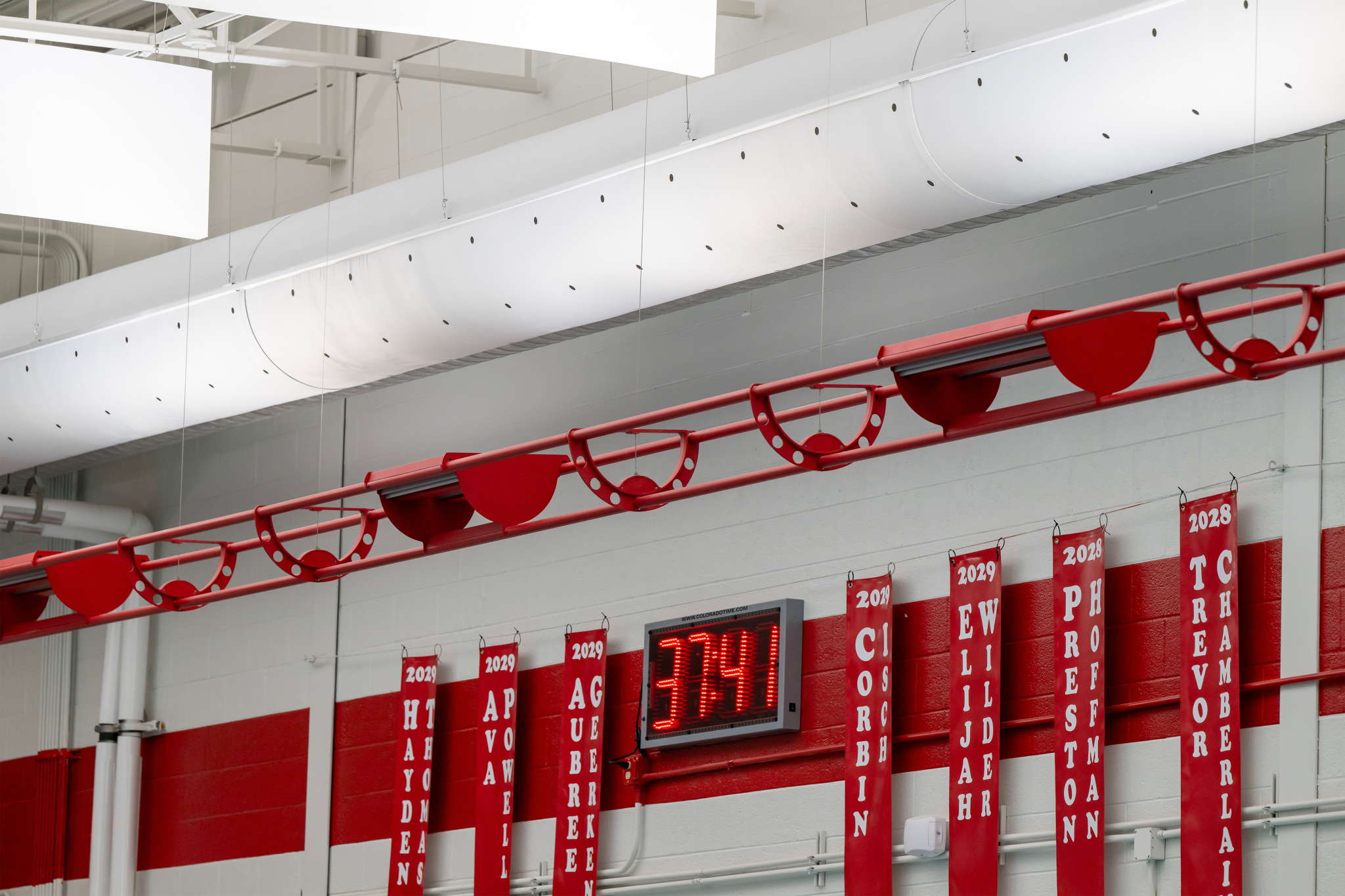 During construction, the team faced an unexpected challenge when the existing wall paint system in the natatorium began to fail. Originally planned to be painted over, the walls instead had to be stripped entirely to ensure proper adhesion for the new finish. Elevatus collaborated with the construction team and the painting contractor to find the most efficient and cost-effective solution, minimizing impact while maintaining quality.