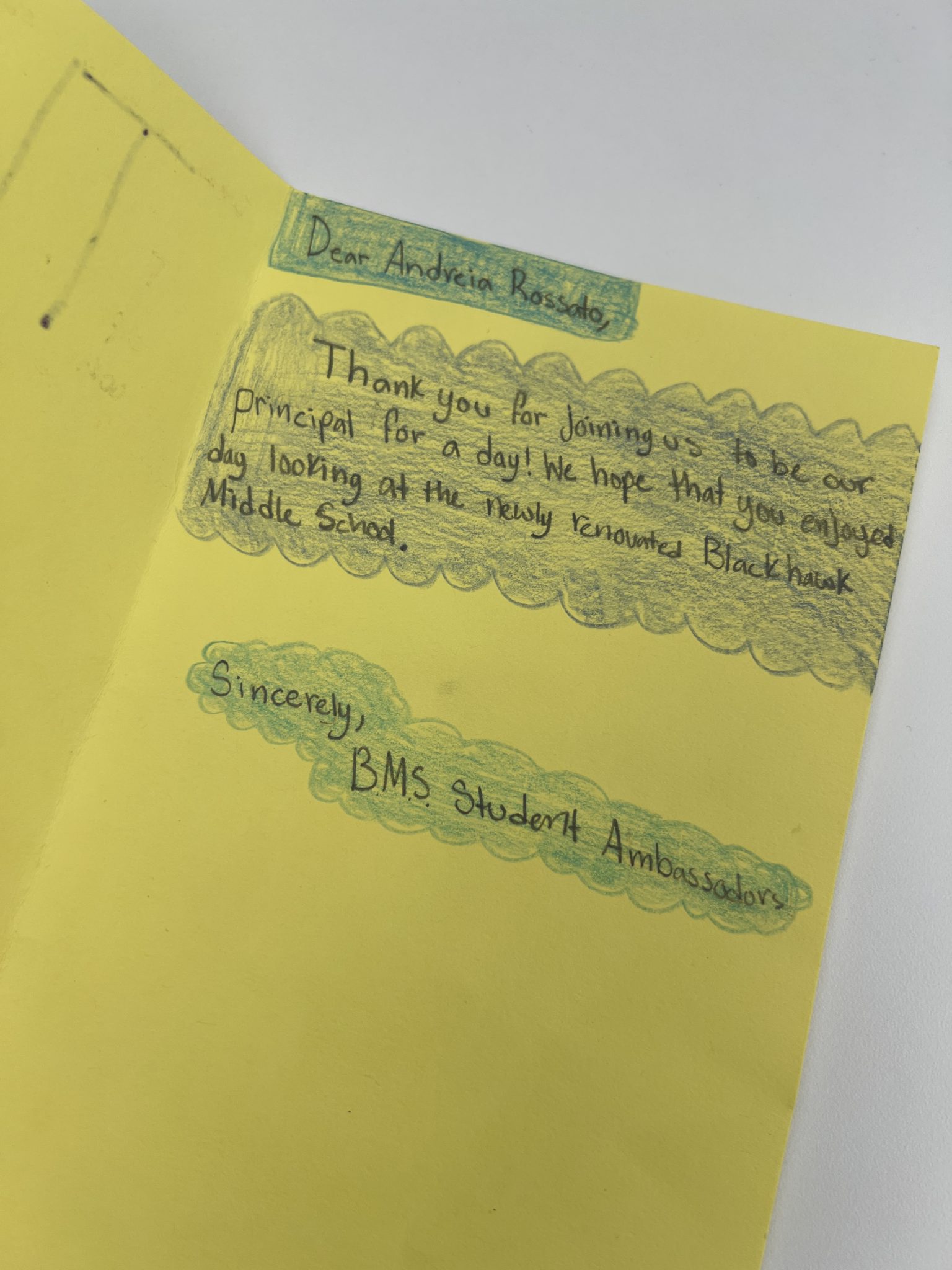 “This morning as Principal for a Day at Blackhawk was truly an amazing experience! I really enjoyed observing the school in action, seeing the students’ pride in their environment was inspiring,” Andreia shared. Her day began with an appearance on Eagle Eyes News, a student-produced morning broadcast that reaches every classroom. Following that, she was given a tour by three Student Ambassadors and Principal Justin Hoering, all while taking in the recent renovations Elevatus completed at the school. She observed how these spaces are being used to foster learning and collaboration.